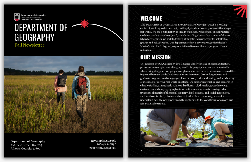 This Fall marks an exciting new chapter as Deepak Mishra becomes department head with David Porinchu as associate head. With three new faculty, rising enrollment, and groundbreaking research across climate, environment, and social justice, the department continues to grow in impact and innovation. We’re excited to share just a glimpse of the many inspiring developments in Geography in our fall newsletter Support Geography Our students learn, travell, and become great researchers thanks in part to gifts like yours. Please consider making a gift to the department of geography today; further support for educational experiences. Update Alumni Profile Update your alumni profile so we can stay in touch and share the great news about the department of geography and Franklin. Be a Mentor Mentorship is proven to help students succeed in their personal, academic, and professional endeavors. Our personalized mentoring experience allows you to connect with students no matter your location and on your schedule - ranging from a single one-hour session to an ongoing mentorship match. Sign up now! Buy Merch Celebrate your alma mater by shopping the Franklin web store!